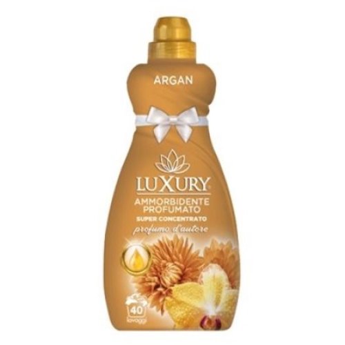 Luxury Ammorbidente Profumato Argan è un ammorbidente super concentrato formulato per offrire al bucato una morbidezza setosa e un profumo raffinato e duraturo, ispirato alla preziosa essenza di Argan.