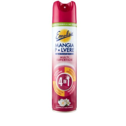 Emulsio MangiaPolvere Multisuperficie 4 in 1 - Magnolia e Gelsomino è uno spray antistatico con una nuova formula senza gas, ideato per offrire una pulizia completa ed efficace su tutte le superfici della casa. Grazie alla sua tecnologia 4 in 1, questo prodotto: