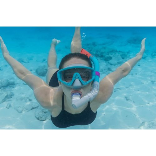 Questo set è l'accessorio ideale per chi desidera esplorare il mondo subacqueo al mare o in piscina. Combina una maschera subacquea e un boccaglio con caratteristiche pensate per la fascia d'età senior.