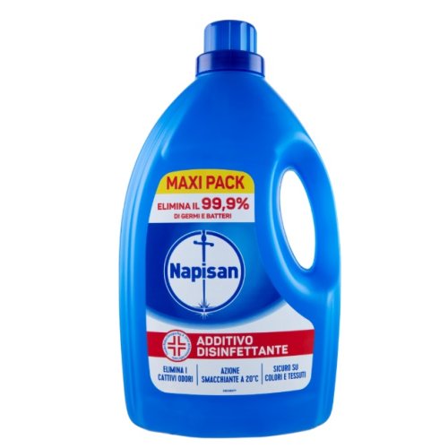 Napisan Additivo Liquido 2,2 L è un igienizzante per il bucato che elimina il 99,9% di batteri e germi, garantendo capi puliti, freschi e igienizzati. Può essere utilizzato in aggiunta al detersivo abituale, adatto anche per tessuti delicati e colorati.