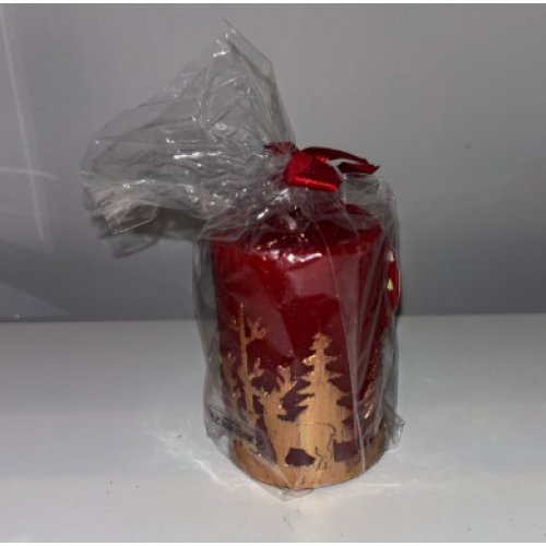 NATALE-CANDELA PILLAR ROSSA IN CERA CON DETTAGLI IN ORO
