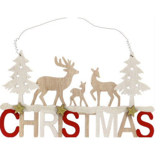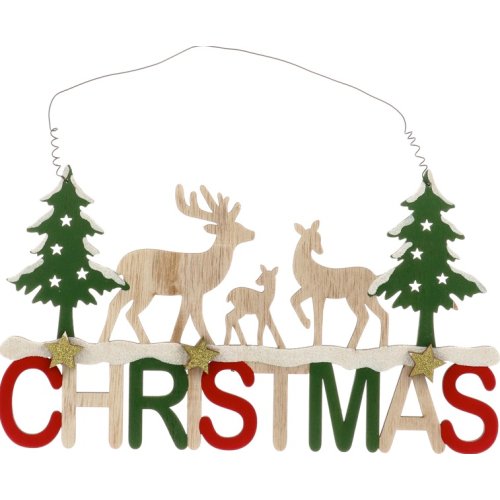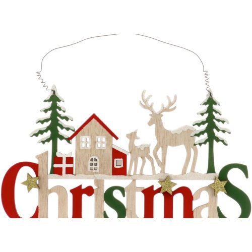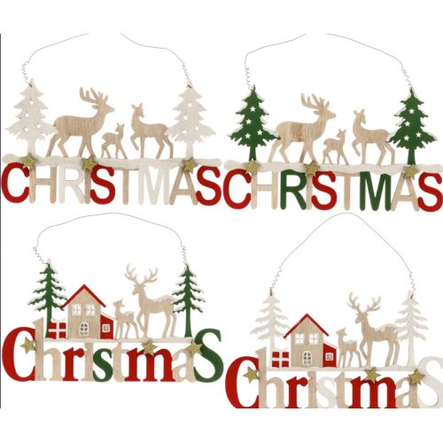 NATALE- DECORAZIONE IN LEGNO SCRITTA CHRISTMAS- COLORI ASSORTITI 25CM