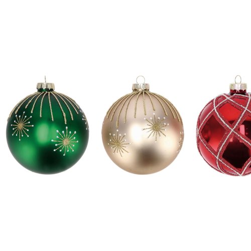 Decora il tuo albero con eleganza grazie a queste raffinate palline di Natale in vetro, disponibili in 3 colori assortiti.