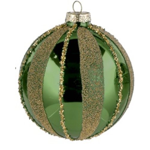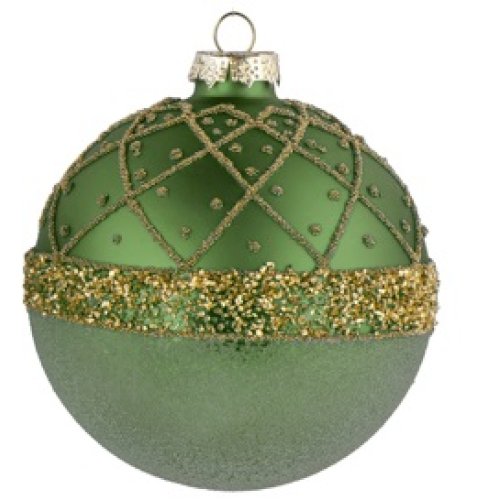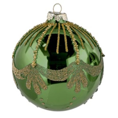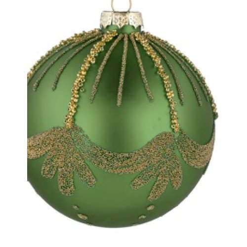 Decora il tuo albero con stile grazie a questa elegante pallina natalizia in vetro verde, impreziosita da motivi decorativi in rilievo e dettagli artigianali.
