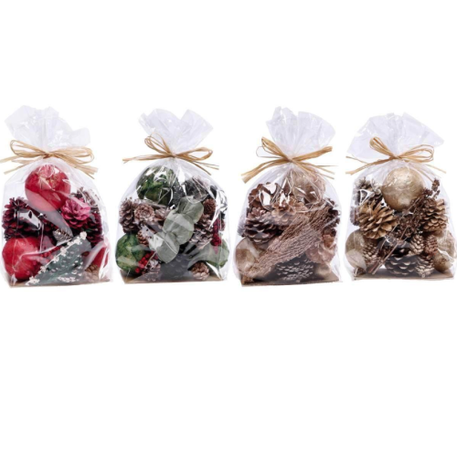 Natale Pot Pourri X Decorazione Natalizio Gr175 Casuale con Coni di Pino e Rametti Secchi 4 colori assortiti