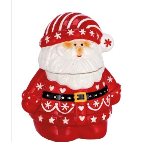 Porta la magia del Natale in casa con questa bellissima scatola decorativa a forma di Babbo Natale, realizzata in ceramica dipinta con dettagli curati e colori tradizionali.
