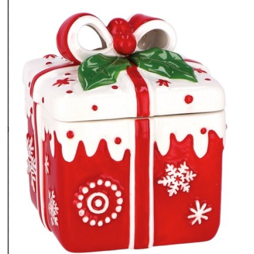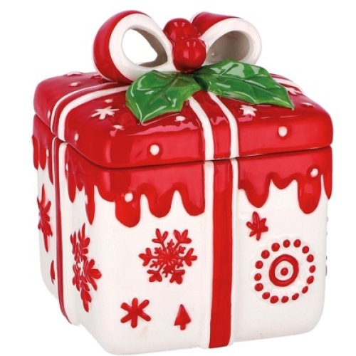 NATALE- SCATOLA IN CERAMICA A FORMA DI DONO- COLORI ASSORTITI