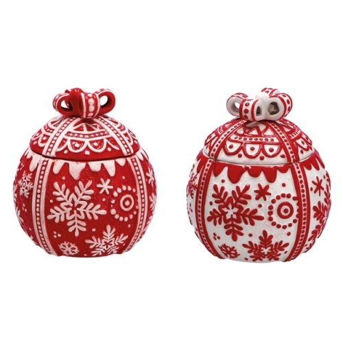 NATALE-SCATOLA IN CERAMICA A FORMA DI DONO- COLORI ASSORTITI