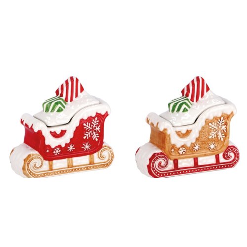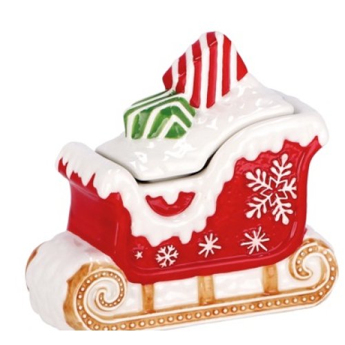 NATALE-SCATOLA IN CERAMICA A FORMA DI SLITTA - COLORI ASSORTITI