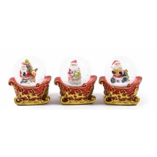 Con dimensioni compatte (6 x 4,5 x 6,5 cm), è perfetta da posizionare su mensole, tavoli, all'interno di vetrine natalizie o come parte di un villaggio di Natale in miniatura. La palla di neve trasparente contiene una scenetta festiva o un soggetto natalizio (assortito), mentre la base a forma di slitta aggiunge un tocco tradizionale e fiabesco.