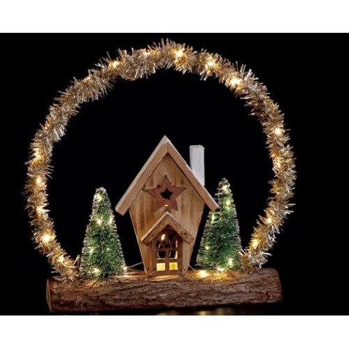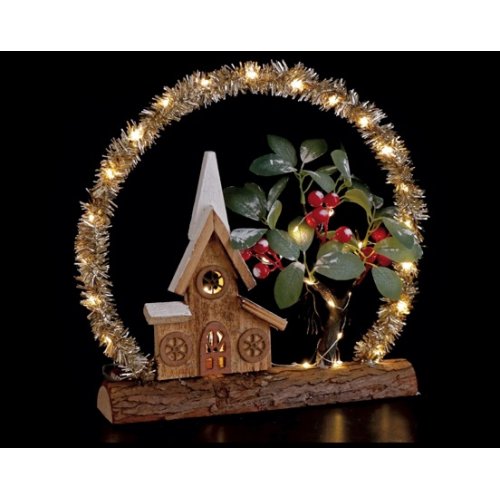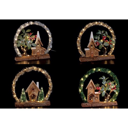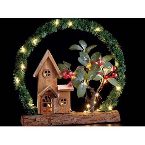 Realizzata con dettagli curati e uno stile natalizio , unisce il calore del legno alla luce soffusa dei LED, per un effetto suggestivo e raffinato.