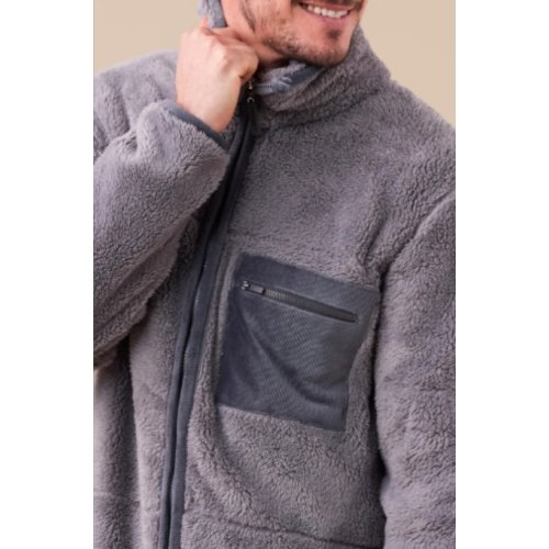 Chiusura a zip e collo alto per un abbraccio totale e carezzevole. Una pregevole lavorazione bicolore gli conferisce un deciso tocco di giovanilita' nei modi dell'homewear.