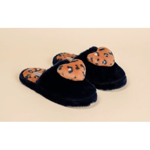 Lasciati avvolgere dal calore e dallo stile con le pantofole donna NOI DI NOTTE PF3105 in eco-pelliccia nera con stampa maculata.