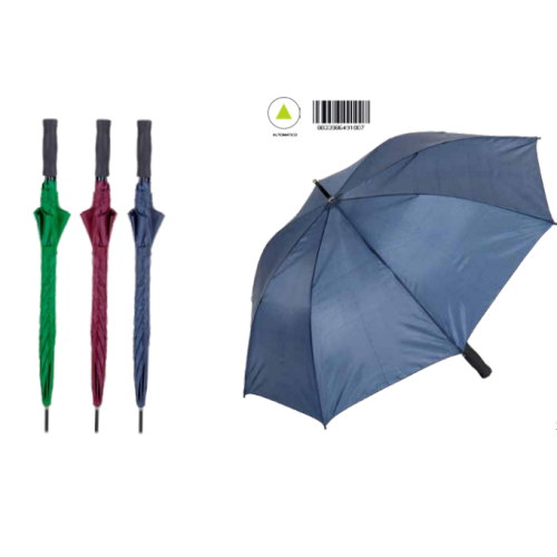 Ombrello lungo tipo bastone, con apertura automatica tramite pulsante. Struttura robusta e capiente, pensato per offrire copertura ottimale dal temporale mantenendo un design elegante. Manico dritto per una presa comoda e lineare, spesso usato per occasioni formali o quotidiane, da tenere anche appeso o infilato in un cappotto.