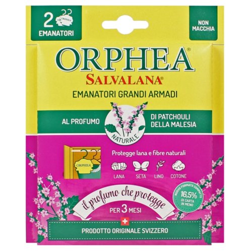 Gli Emanatori Orphea Salvalana per grandi armadi sono perfetti per proteggere lana, seta, lino e cotone in spazi più ampi, mantenendo i tuoi capi freschi e profumati fino a 3 mesi. Il loro profumo naturale di Patchouli della Malesia crea un’atmosfera delicata e avvolgente, mentre protegge efficacemente i tessuti da insetti e tarme, senza macchiare. Prodotto originale svizzero, semplice da usare e con formato compatto.