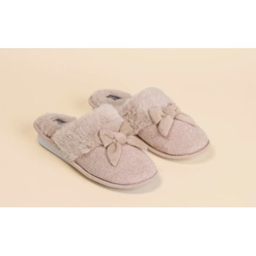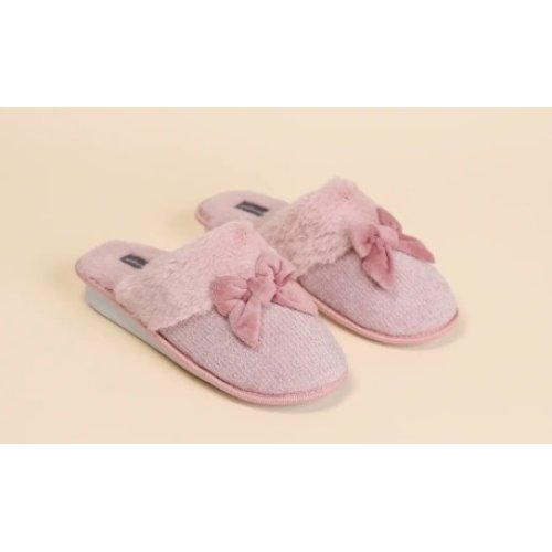 NOI DI NOTTE- PANTOFOLA DONNA IN CINIGLIA ED ECO-PELLICCIA CON FIOCCO ART.PF3116- COLORI ASSORTITI