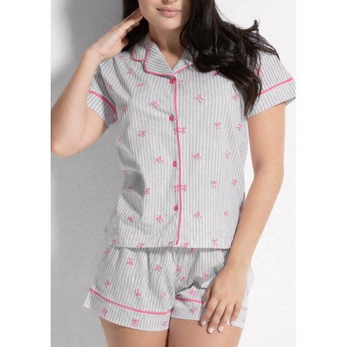 Il Pigiama Donna Corto Love and Bra (Art. 104099) è la scelta perfetta per chi cerca un completo notte leggero, moderno e di tendenza. Composto da maglia a maniche corte e pantaloncino, questo modello si distingue per un design versatile che coniuga perfettamente la comodità necessaria per il riposo e un'estetica curata, tipica del brand Love and Bra.