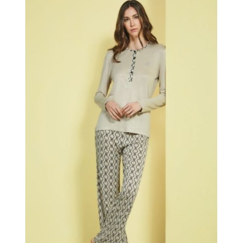 Il pigiama da donna Laura Biagiotti Art. 96927 è l'essenza della raffinatezza domestica. Realizzato in morbida viscosa, questo completo a manica lunga offre una vestibilità fluida e una sensazione di freschezza setosa sulla pelle, superiore al comune cotone.