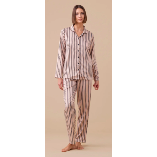 Il pigiama da donna in raso con top a taglio uomo e abbottonatura centrale è un capo elegante e confortevole, ideale per chi cerca uno stile raffinato anche durante la notte. Questo design si ispira alla tradizione maschile, con un taglio dritto e lineare, ma è realizzato con tessuti morbidi e femminili.