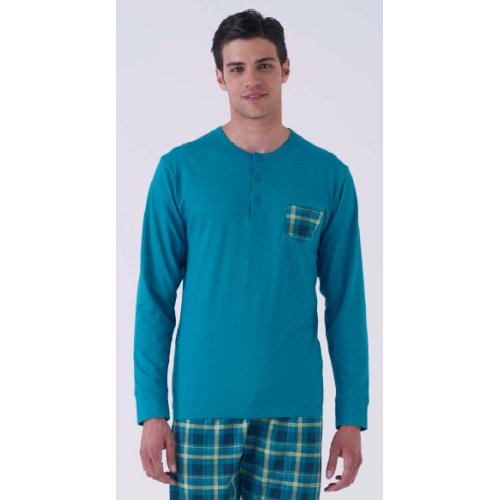 Il pigiama lungo da uomo Karel Più Art. SK0269 è progettato per chi cerca un riposo naturale e traspirante. Realizzato in puro cotone, questo completo offre una vestibilità regolare e confortevole, ideale per le stagioni intermedie e per chi preferisce la freschezza delle fibre naturali.