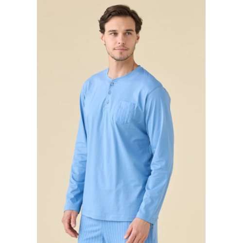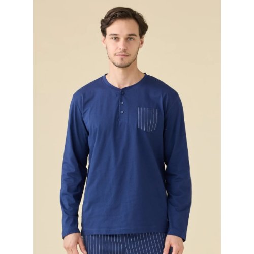 - La Maglia: Top a manica lunga dal design pulito. Presenta una pratica apertura a serafino con bottoncini, ideale per regolare il comfort intorno al collo. Il colore della maglia riprende la tonalità dominante della fantasia del pantalone, creando un look coordinato e armonioso.