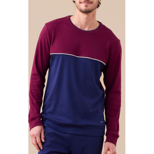 Pigiama uomo in caldo cotone, top di colore unito a girocollo e pantaloni di colore unito con polsino.