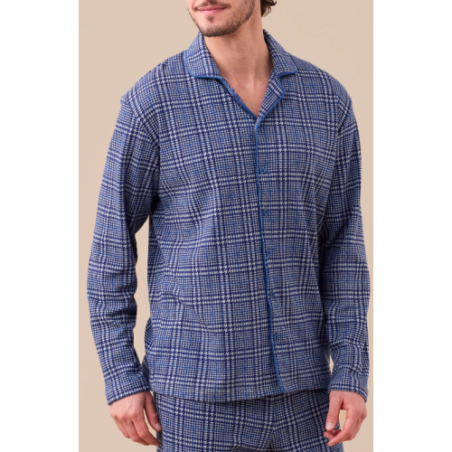 Articolo: Jordy : Pigiama uomo in caldo cotone, top taglio uomo con abbottonatura sul davanti in stampa quadretto e pantaloni in stampa quadretto.