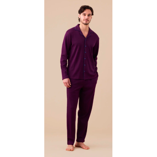 Pigiama da uomo realizzato in caldo cotone, ideale per garantire comfort e calore durante le stagioni fredde. La maglia a tinta unita, con collo serafino a tre bottoni, offre uno stile semplice ma curato, perfetto per l’uso quotidiano.
