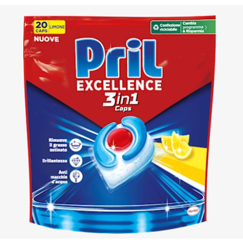 Le caps per lavastoviglie Pril Excellence 3in1 sono la soluzione ideale per una pulizia impeccabile delle stoviglie! La loro formula a rapida dissoluzione rimuove efficacemente il grasso ostinato anche con cicli brevi ed eco a basse temperature. Assicurano stoviglie e bicchieri brillanti, prevenendo la formazione di aloni d'acqua. Inoltre, aiutano a contrastare i cattivi odori, lasciando un fresco profumo di limone. Perfette per chi cerca risultati eccellenti con il massimo della praticità. Provale e scopri la differenza!