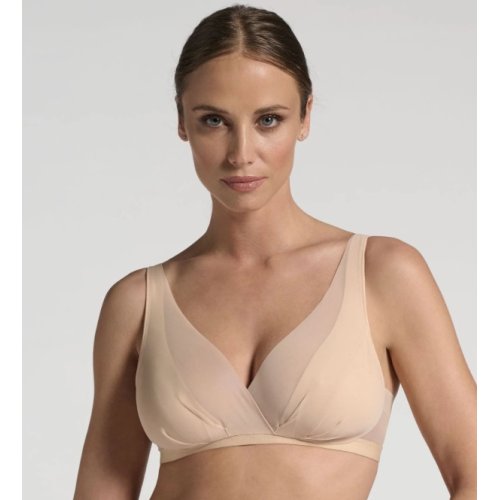 - Sostegno Senza Ferretto: La costruzione delle coppe a tre tagli è studiata per sollevare e contenere il décolleté in modo sicuro, eliminando ogni fastidio o pressione sulle costole.