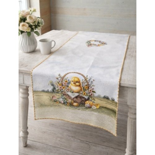Realizzato in 100% puro cotone di alta qualità, il runner offre una mano morbida e una resistenza eccellente. È perfetto da utilizzare come "vis-à-vis" per una colazione pasquale ricercata, oppure come elemento decorativo sopra una tovaglia in tinta unita per creare un contrasto cromatico raffinato e moderno.