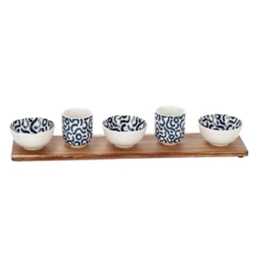 SET 5 CIOTOLE IN PORCELLANO + VASSOIO IN BAMBOO