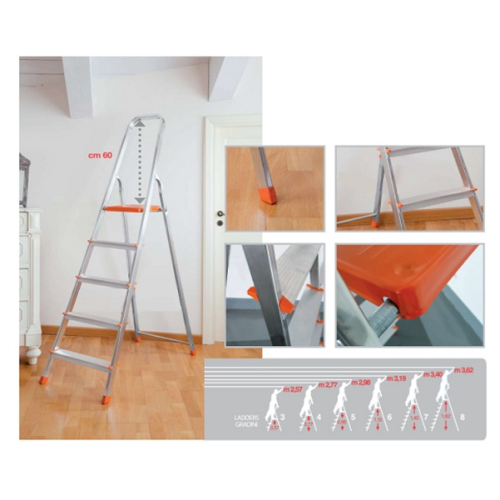 La scala in alluminio "Bridget" a 4 gradini è progettata per un uso domestico versatile e sicuro, ideale per raggiungere altezze moderate per pulizie, decorazioni, o lavori fai-da-te leggeri.