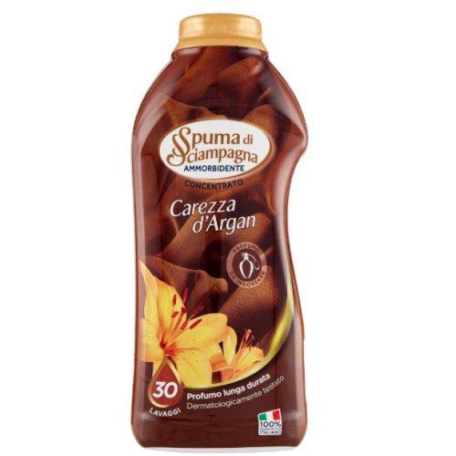 Spuma di Sciampagna Ammorbidente Concentrato Carezza d’Argan è un ammorbidente pensato per donare al bucato una morbidezza eccezionale e un profumo persistente.