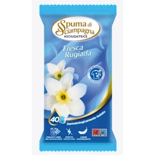 I foglietti umidi per asciugatrice Spuma di Sciampagna Fresca Rugiada rendono il bucato incredibilmente morbido e piacevolmente profumato. Dermatologicamente testati, sono ideali per tutti i tipi di tessuto e donano un effetto antistatico durante l’asciugatura. Ogni foglietto rilascia una profumazione delicata e fresca, che avvolge i capi e li mantiene fragranti a lungo.