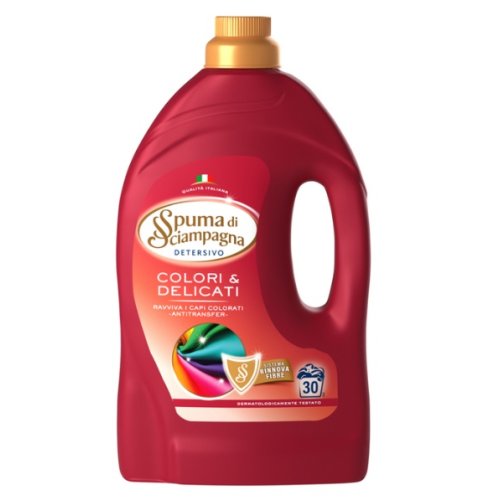 SPUMA DI SCIAMPAGNA DETERSIVO LIQUIDO BUCATO LAVATRICE COLORATI & DELICATI 30 LAVAGGI 1350
