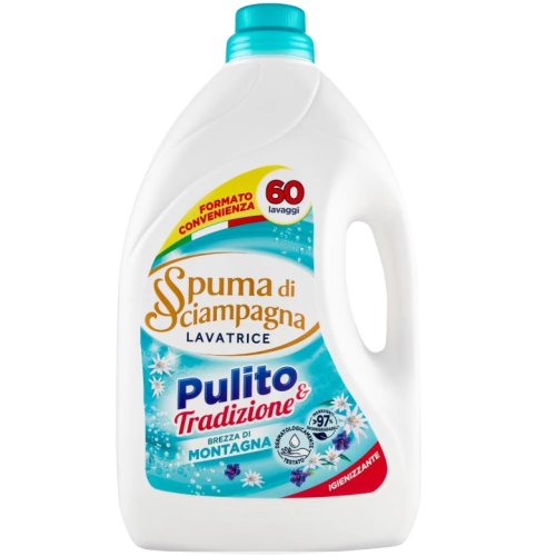 Scopri la freschezza e l’efficacia di Spuma di Sciampagna Lavatrice – Pulito & Tradizione Brezza di Montagna.