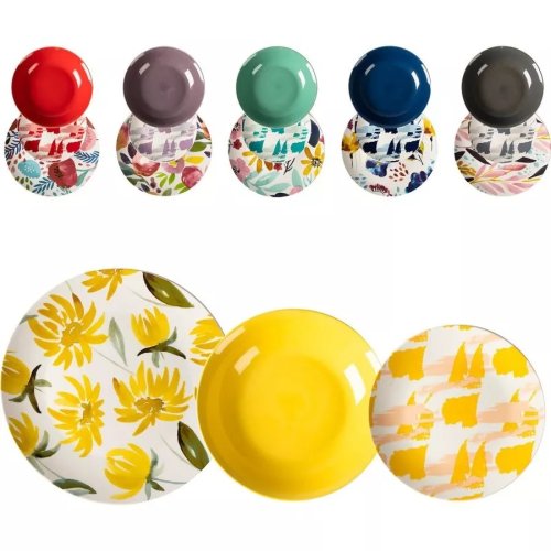 Il set include 18 pezzi essenziali per ogni tavola ben apparecchiata, dai piatti piani e fondi ai piatti dessert.