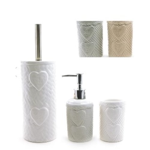 Rinnova l'aspetto del tuo lavabo con questo set coordinato, realizzato in ceramica di alta qualità. Il set è composto dagli elementi essenziali per l'igiene quotidiana, offrendo una soluzione pratica che aggiunge un tocco di classe e uniformità cromatica all'ambiente bagno.
