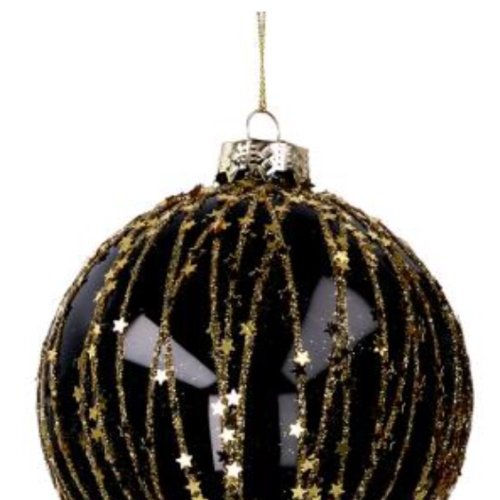 Dona al tuo albero di Natale un tocco elegante e sofisticato con la sfera in vetro nera e oro con glitter da 8 cm.