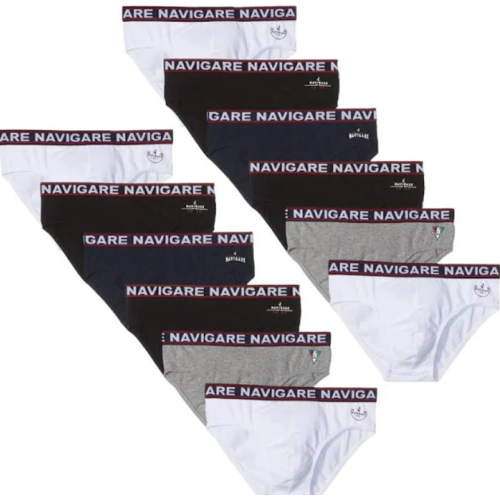 Gli slip Navigare (Pacco da 6) Uomo offrono un'eccellente combinazione di comfort, supporto e stile, ideali per l'uso quotidiano. Realizzati in cotone elasticizzato di alta qualità, garantiscono una vestibilità aderente e traspirante, con un elastico esterno robusto che assicura una tenuta sicura senza comprimere.