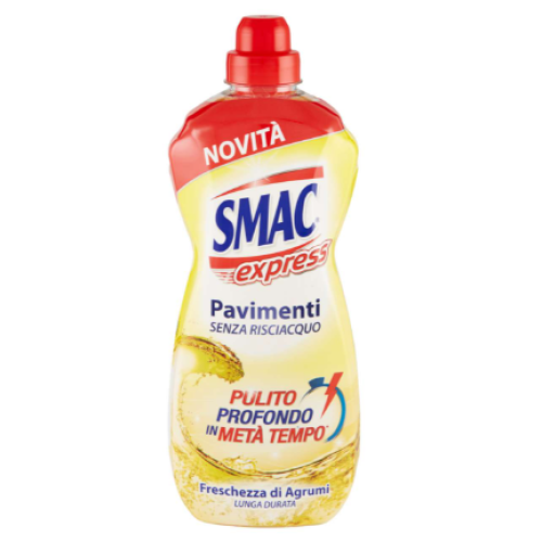 Detergente per pavimenti Smac Express, formulato per garantire una pulizia profonda e immediata su tutte le superfici lavabili. La sua formula ad asciugatura rapida lascia i pavimenti brillanti senza bisogno di risciacquo (salvo superfici delicate). Arricchito con una fresca fragranza agli agrumi, elimina i cattivi odori e dona un profumo piacevole e duraturo. Ideale per l’uso quotidiano.