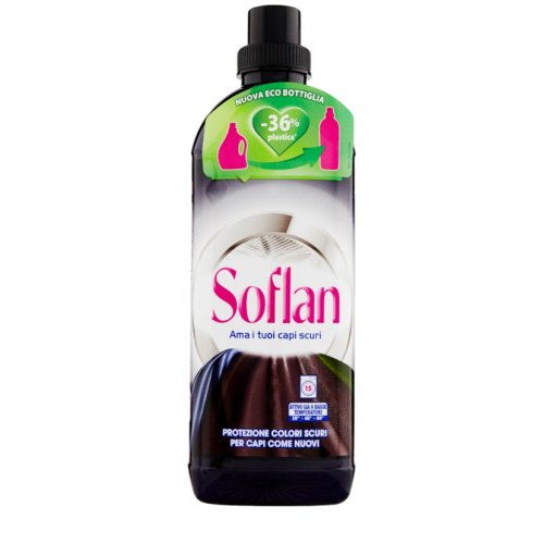 Soflan Ama i tuoi capi scuri è il detersivo liquido appositamente studiato per la protezione dei capi scuri e neri, aiutando a mantenerli intensi e brillanti lavaggio dopo lavaggio. La sua formula delicata agisce già a basse temperature (20°C – 40°C), contribuendo alla conservazione dei colori senza rovinarli.