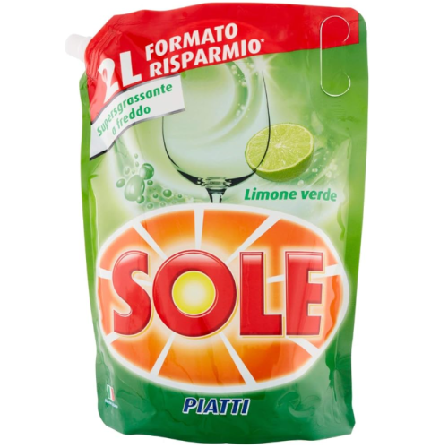 Il detersivo piatti liquido Sole Piatti Liquido Ecoricarica Busta Limone Verde 2 LT è ampiamente disponibile online presso vari rivenditori e offre un'azione sgrassante e brillantante. Le recensioni degli utenti ne lodano l'efficacia sgrassante e il classico profumo di limone.