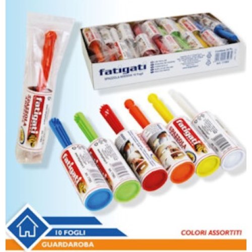 Fatigati rullo levapelucchi spazzola per abiti con 10 fogli adesivi è la soluzione rapida e pratica per mantenere i tuoi abiti e tessuti sempre impeccabili. Questo accessorio essenziale rimuove efficacemente e in pochi secondi peli di animali, capelli, pelucchi, lanugine e polvere da qualsiasi tipo di tessuto.