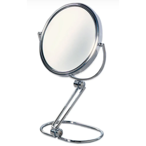 Specchio ingranditore per trucco da appoggio in metallo cromato, con supporto estensibile ed inclinazione regolabile. La comodità di un piccolo specchietto facile da riporre a fine utilizzo ed in grado di semplificare tante attività quotidiane come truccarsi o pettinarsi.