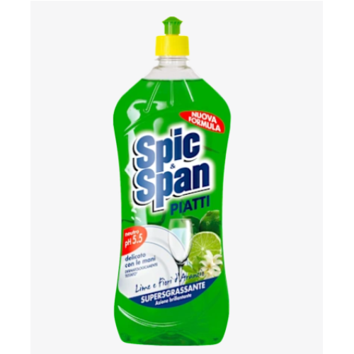 Il detergente per piatti Spic & Span arriva con una nuova formula super sgrassante ad azione brillantante, per stoviglie e piatti ancora più puliti! Grazie al suo pH 5.5 neutro sulla pelle, Spic & Span elimina rapidamente anche l’unto e le incrostazioni più difficili risultando comunque delicato sulle tue mani. La sua profumazione a lime e fiori d’arancio va poi ad aggiungere a pulizia e brillantezza anche un aroma fresco e piacevole.