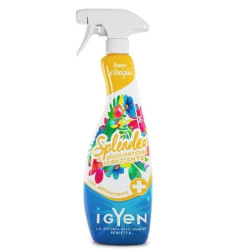 Splendex IGYEN è un profumatore spray igienizzante per ambienti che unisce l'efficacia dell'azione antibatterica alla piacevolezza di una profumazione avvolgente alla vaniglia. Grazie alla sua formula con agenti antibatterici, è ideale per igienizzare superfici e ambienti, neutralizzando cattivi odori e lasciando un'aria fresca e profumata.