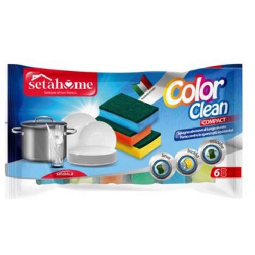 Set da 6 spugne abrasive “Color Clean Compact” di Setahome, disponibili in colori assortiti.