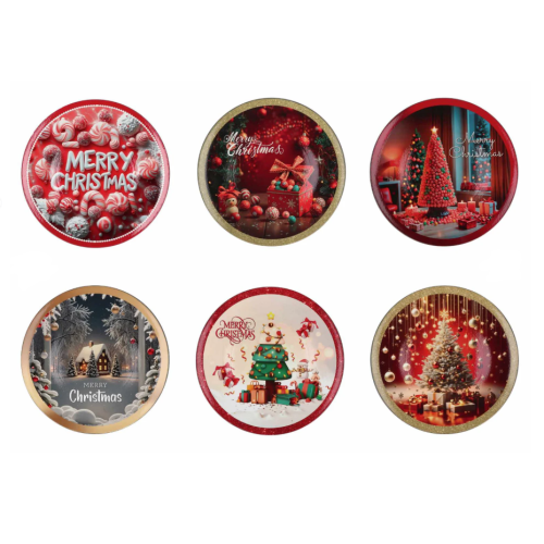 Colore/tema: Tema natalizio — potrebbe essere rosso, verde, oro, argento o multicolore; solitamente con una finitura lucida o decorata che richiama l’atmosfera delle feste.
